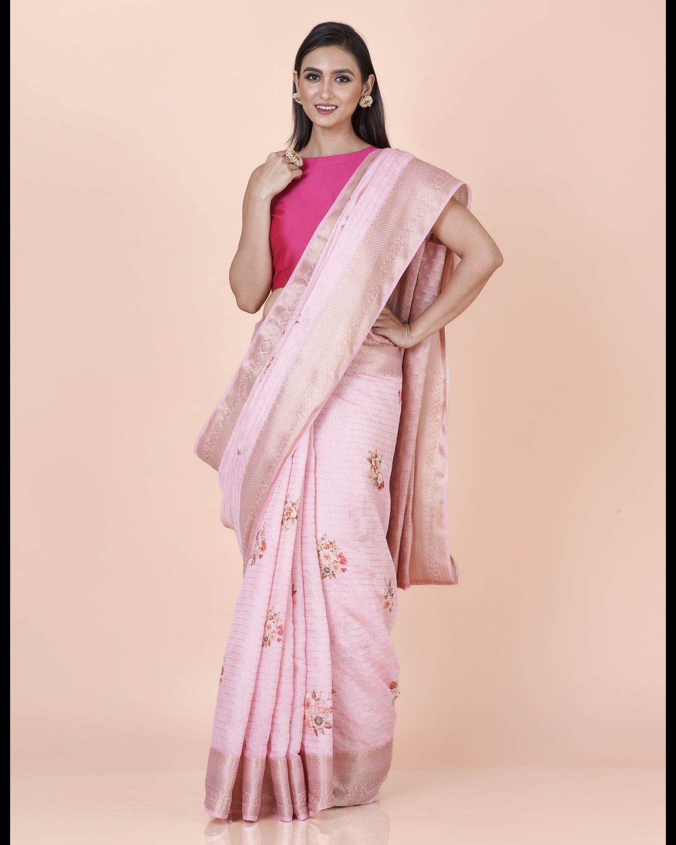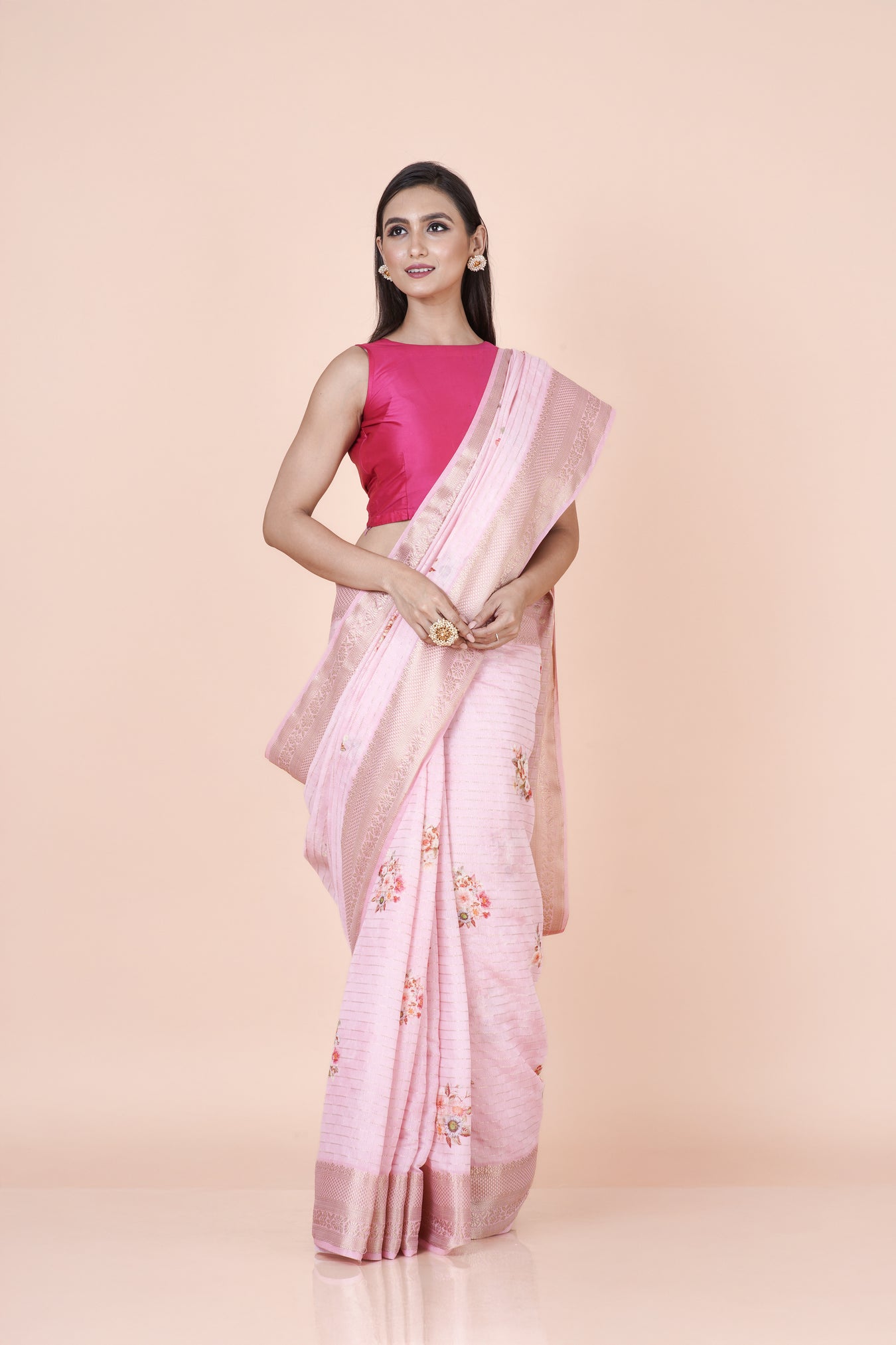 Color : PinkFabric : Chanderi CheckTechnique : Digital PrintedPattern : Floral