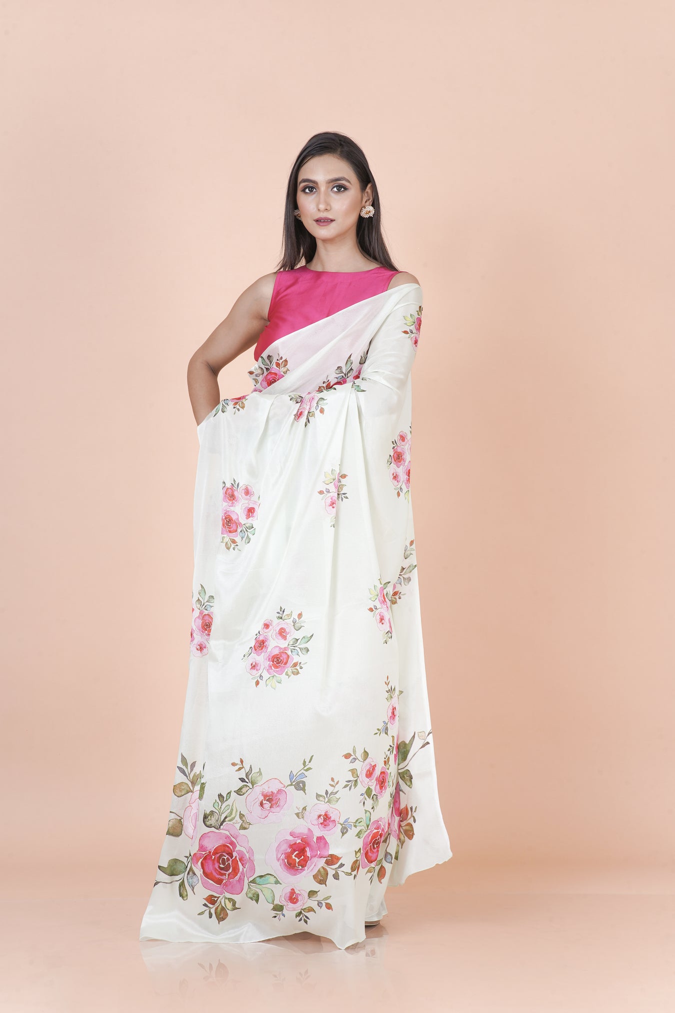 Color: WhiteFabric: Chinon SilkTechnique: Digital PrintedPattern: Floral
