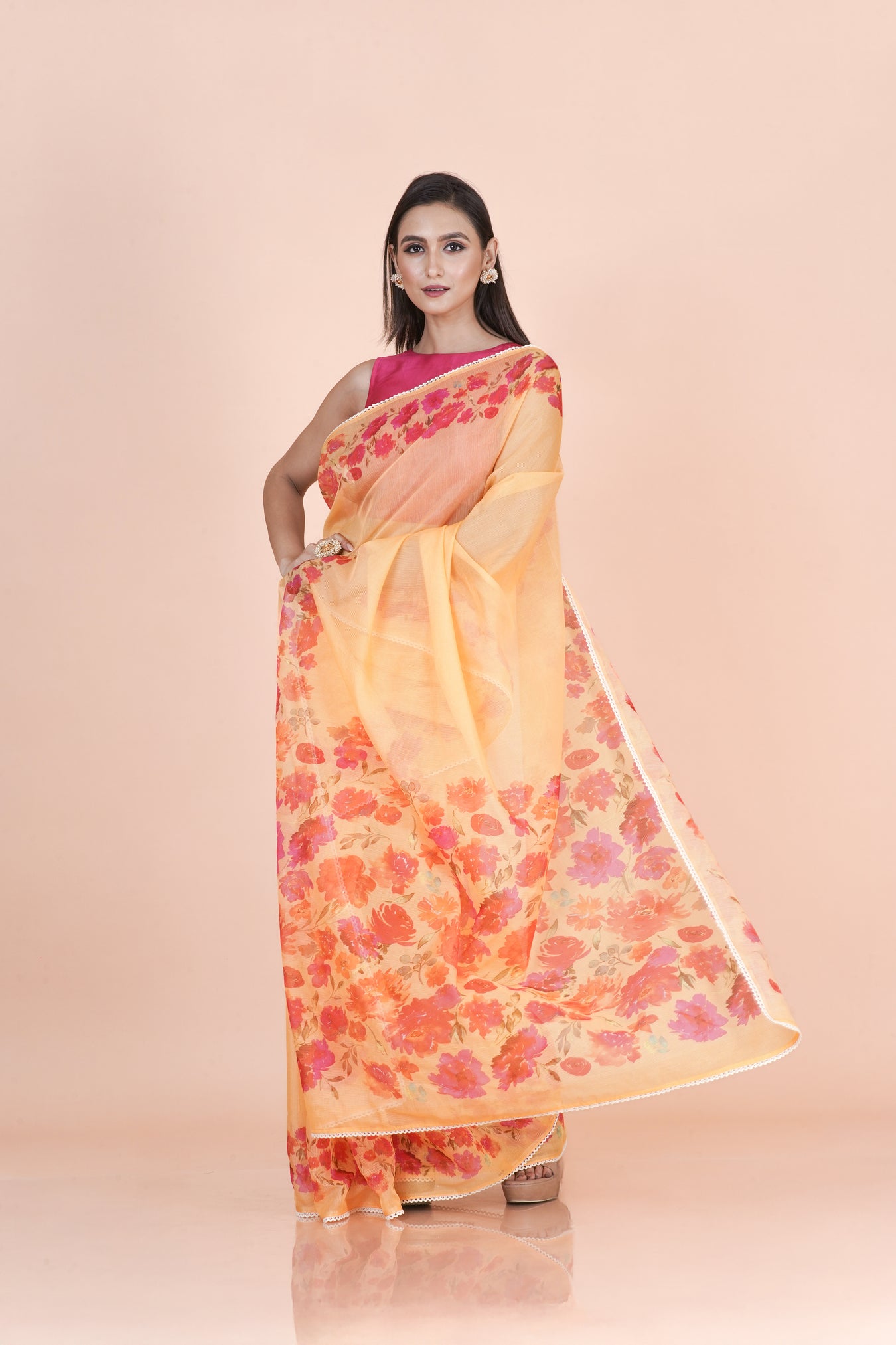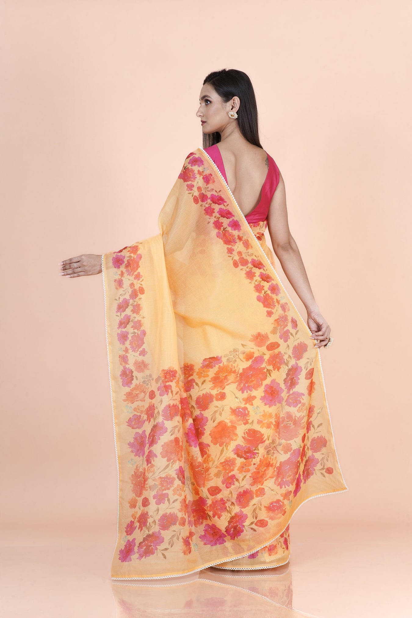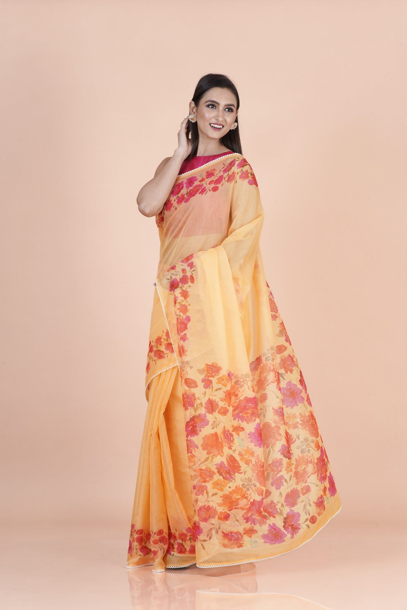COLOR: YellowFABRIC: SupernetTechnique: Digital Printed lace borderPATTERN: Floral